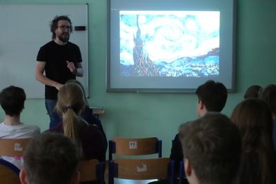 W dniu 25 marca 2025 r. naszą szkołę odwiedził Pan Karol Wójcicki – znany popularyzator astronomii. Spotkanie odbyło się w ramach realizacji projektu „Kosmiczne spotkania” ze Szkolnego Budżetu Obywatelskiego.